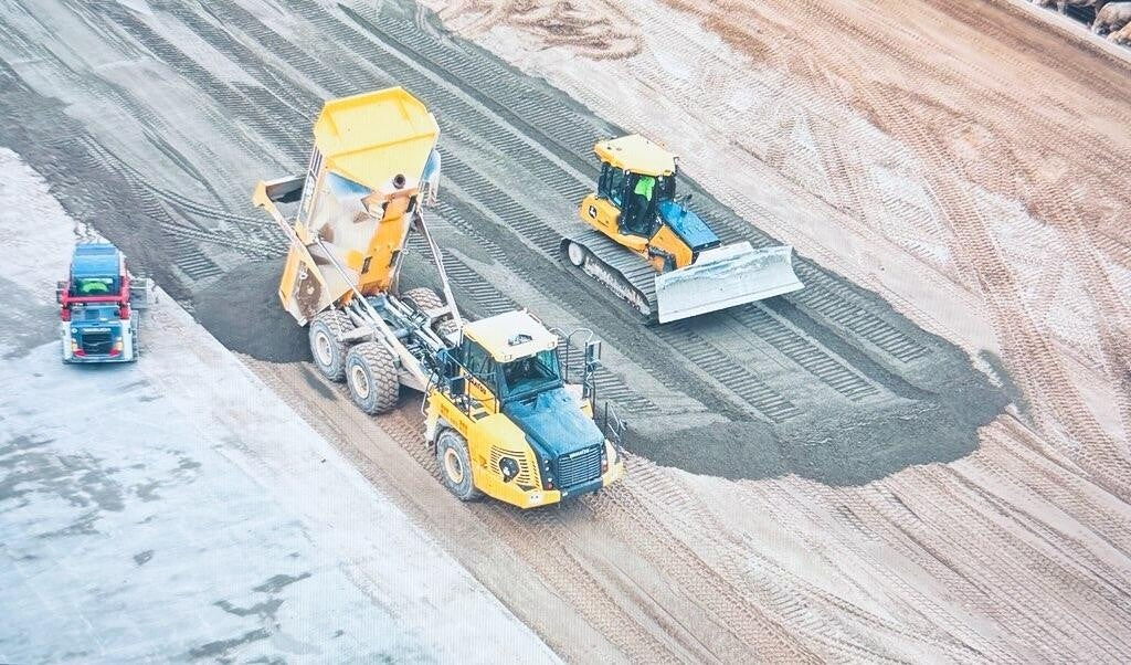 The RCC material is made out of our rapid, mobile plant. After this, the material is loaded onto a dump truck and then transported to the job site.